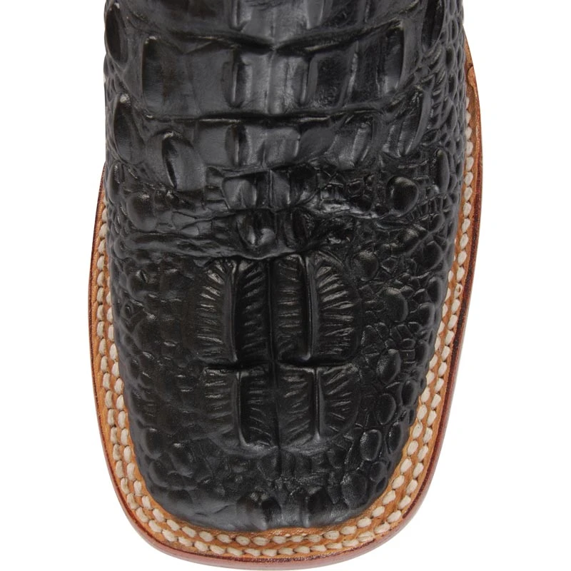 Great looking in and out of the saddle, these Ferrini Black Hornback Caiman Print boots are sure to impress. The cowhide caiman print vamp looks great without breaking the bank. These boots feature cushioned footbeds, walking heel, broad square toe, and double stitch welt.