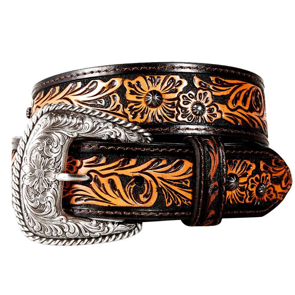 - Hand Tooled Flowers Centered With Parachute Nail Head Spots