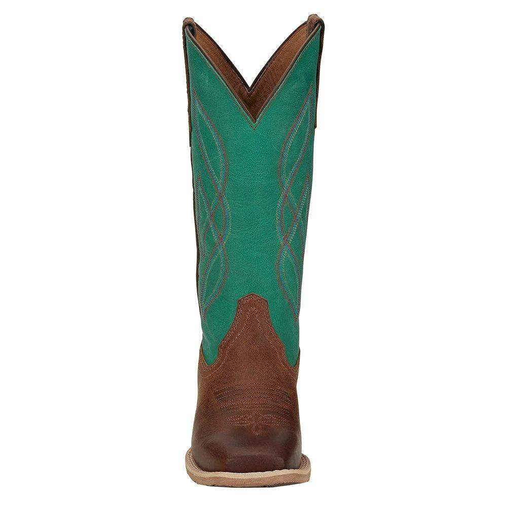 Its turquoise leather upper is accented by a simple stitch pattern. The waxy tan foot paired with the square toe gives this boot a classic look. The J-Flex Flexible Comfort System insole with removable orthotic inserts guarantees lasting comfort for the free spirit ready to run wild.
