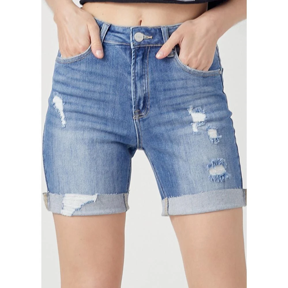 The Risen Jeans Distressed Boyfriend Shorts are the perfect mix of style and comfort. Made with high-quality denim, these shorts feature a relaxed, boyfriend fit and distressed detailing that adds a touch of edge to your wardrobe. With a mid-rise waist and frayed hem, these shorts are versatile enough to wear on a casual day out or a night on the town. Pair them with a tank top and sneakers for a casual look or dress them up with a blouse and heels for a night out.