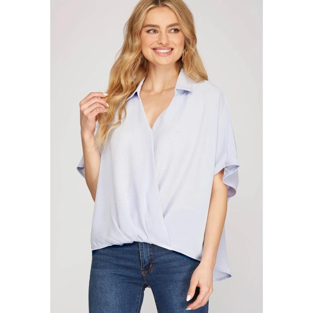 Super cute blue blouse from She and Sky that pairs great with your favorite white pants or shorts.