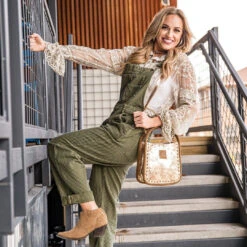 The Flaxen Roan Sugar Satchel is crafted in a golden, metallic full grain leather that is buffed for a casual feel and finished with a glamorous, golden metallic shine.