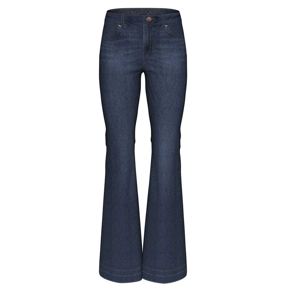 Your favorite Western jeans are going green. As part of the Wrangler Retro® Green Jean assortment, these women’s trouser jeans are reimagined to combine all the Western style you love with enhanced sustainability features you can be proud of. Inspired by Wrangler’s love of the land, the Green Jean is designed using a blend of recycled cotton and made exclusively in factories that have met some of the highest standards for prioritizing employee health and safety. Style couldn’t be missing from this Western classic—that’s why the Green Jean trouser features the same curve-flattering high rise and contoured waist of the originals. The style offers a close fit through the thigh before releasing at the knee to a subtle, wide leg opening that fits perfectly around your favorite cowgirl boots and Western-inspired heels.