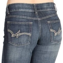 You’ve found a wardrobe winner with this classically styled and ultra flattering jean. It features traditional five-pocket styling, embroidered hip pockets and a straight leg cut for a classic and versatile look. Stretch denim and a contour waist that sits above the hip create the comfort you’ll love.
