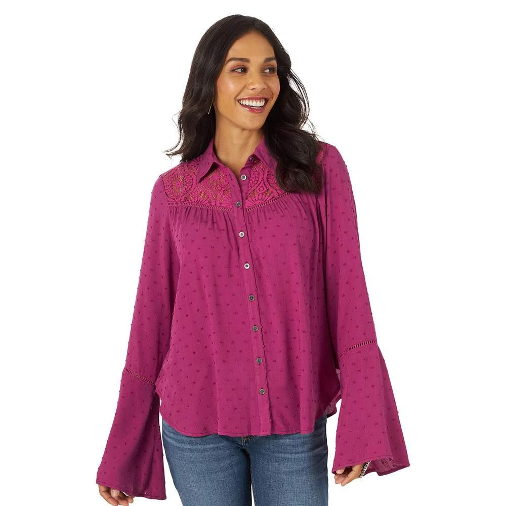 Flirty and carefree, our women’s Wrangler long-sleeve vintage blouse will add the right amount of boho flair to any outfit you wear out. This magenta top is crafted from rayon crepe for a soft feel and refined look from day to night.